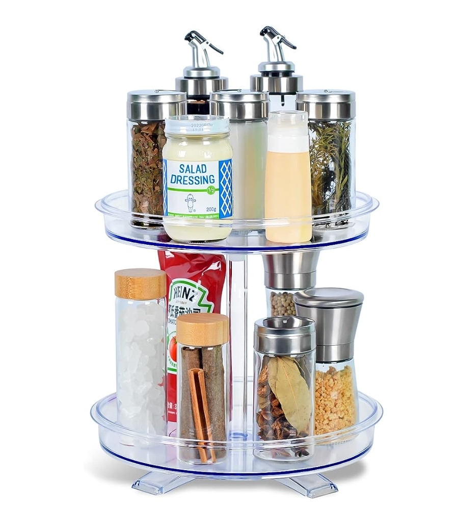 CLIP QPON! 2 Tier Lazy Susan Turntable Organizer, LAZYBISON 360 Rotating Makeup Organizer for Vanity, Spice Rack Organizer for Kitchen Cabinet Pantry Let me know if you grab #ad