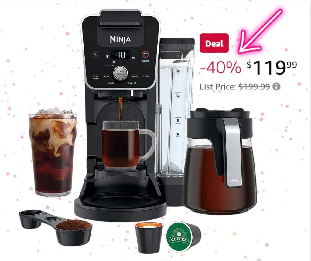 🤩🤩🤩 An awesome price on the Ninja DualBrew System 12-Cup Coffee Maker! Single serve with ground and K-cups. Three brewing styles and a 60 ounce carafe!