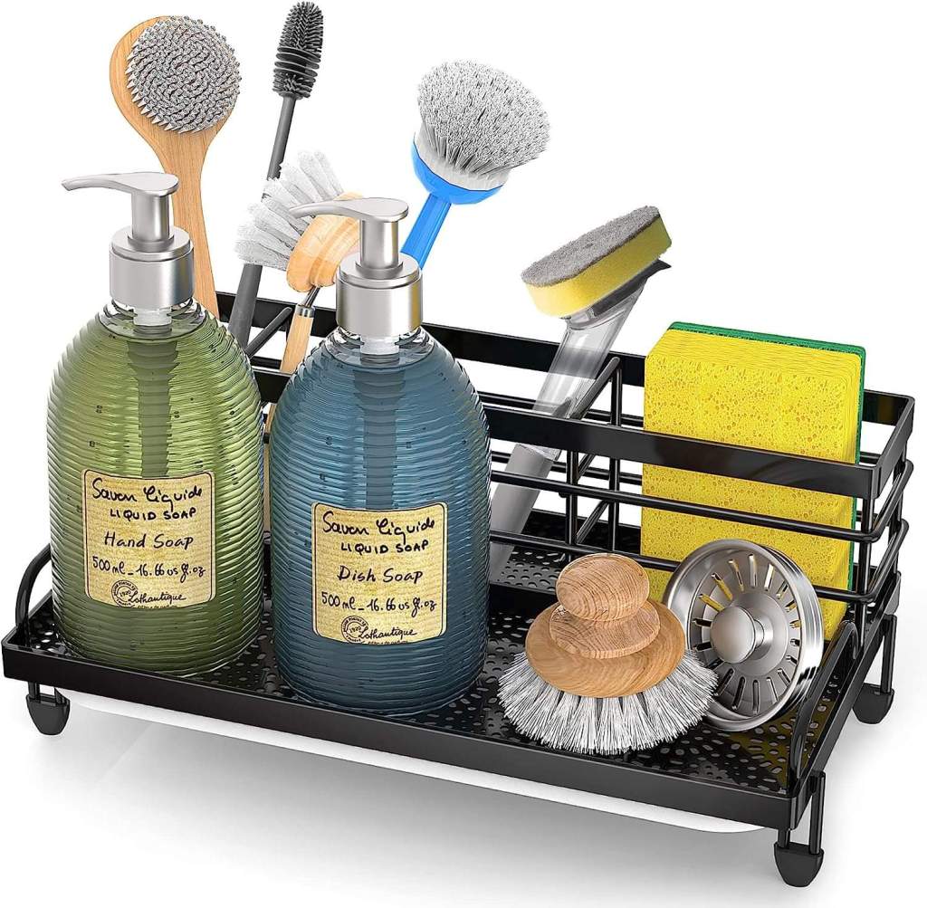 I love having an organized kitchen sink area! This kitchen sink caddy will help a ton! => Love how you can fit all your scrub brushes, soaps, and sponges! Also has a drip tray underneath too! Toggle to see the other color options!