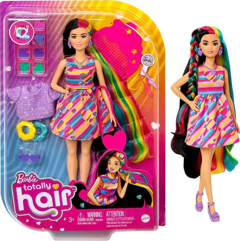 Barbie Totally Hair Doll, Heart-Themed with 8.5-Inch Fantasy Hair & 15 Styling Accessories (8 with Color-Change Feature)