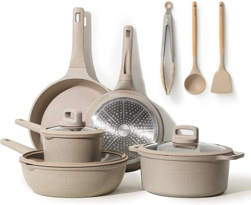 CAROTE Pots and Pans Set Nonstick, 11Pcs Kitchen Cookware Sets, Stackable Induction Cookware, Pot and Pan set, Pans for Cooking, Taupe Granite Let me know if you grab #ad