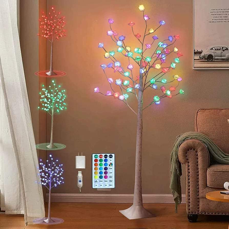 LKGOOD Forever Roses Tree Lamp with Remote Control Timer, 80-Piece Eternal Rose Preserved Flowers Lamp(5FT) clip qpōn #ad