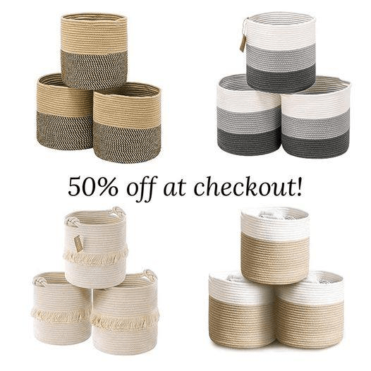 Set of 3 rope storage baskets dropping 50% off at checkout! These are great for storage or to use instead of gift bags. Let me know if you grab #ad