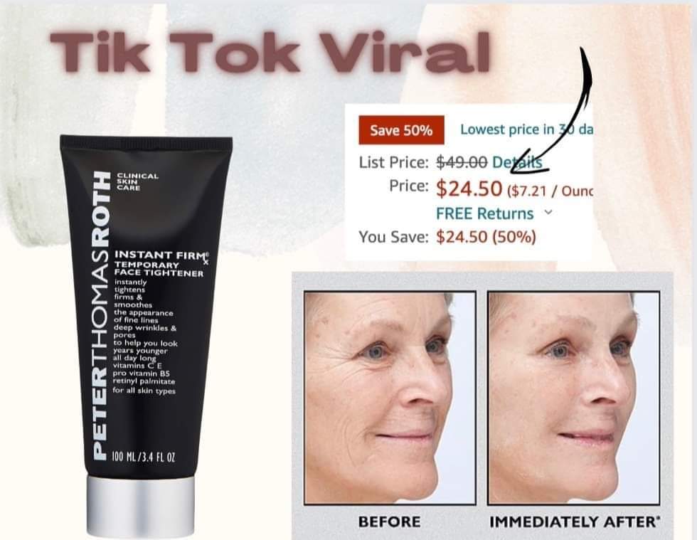WHAT THE!?! RUN! You’ve seen this on Tik Tok and Insta! The viral Peter Thomas Roth Instant FIRMx Temporary Face Tightener! It’s half off today. Sold and shipped by Amazon so your item is 100% guaranteed.