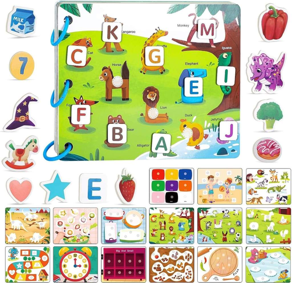 The busy book helps create the link between learning and playing, allowing kids to improve motor skills, cognitive skills, basic literacy, memory, identification, logical thinking and hand-eye coordination after learning in playing. An excellent educational toy for toddlers!!