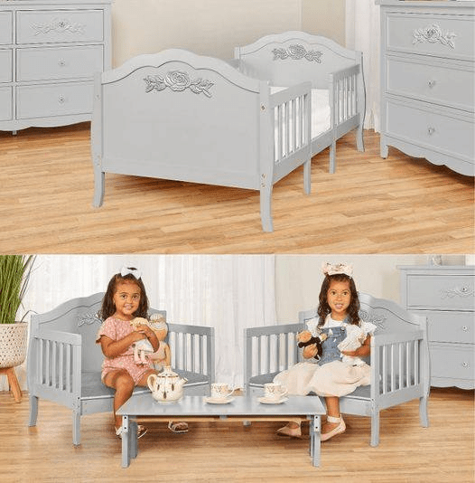 Now this is a convertible toddler bed that I have not seen before! This SweetPea Baby Rose 3-in-1 Convertible Toddler Bed goes from a toddler bed to two kids chairs and a table! 93.65 (reg 199.99) for the Grey option. Let me know if you grab #ad