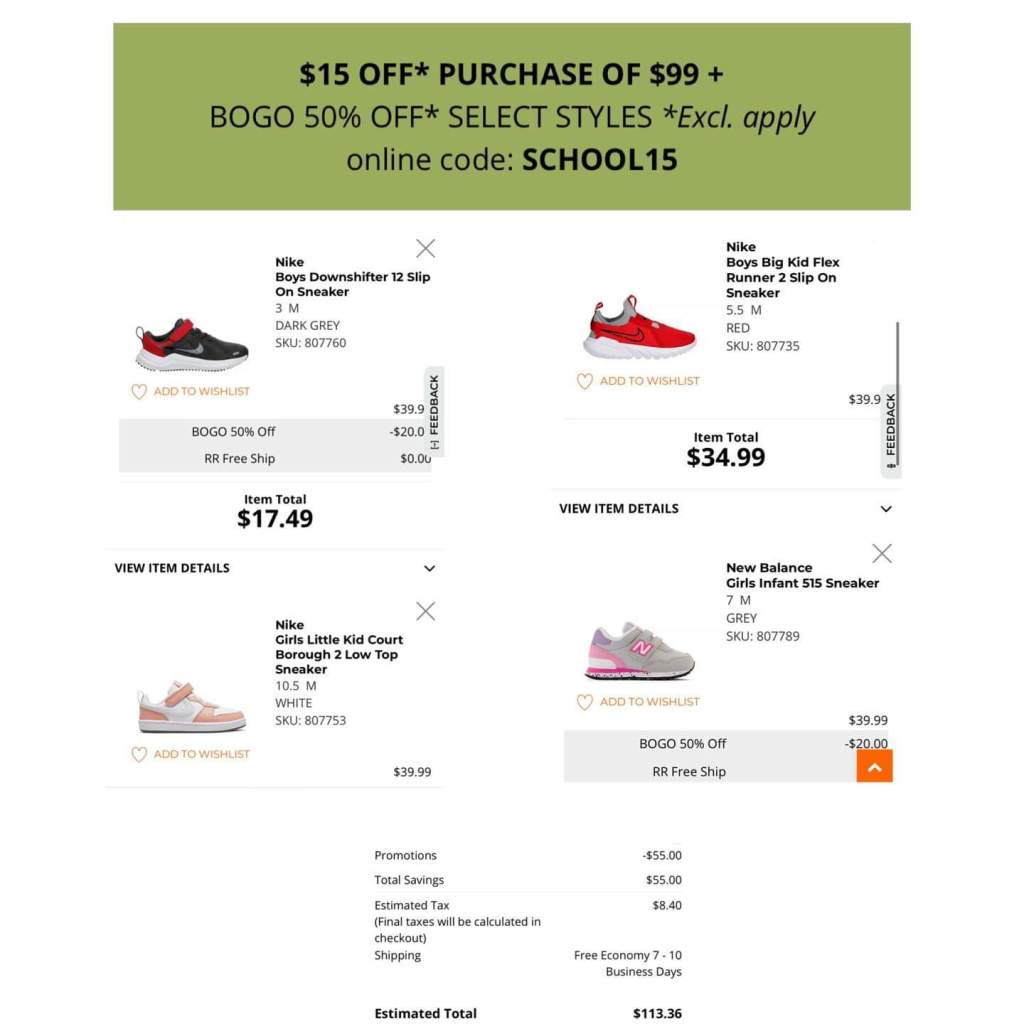 Ok, stick with me here— TRIPLE savings ahead! I just added these four pair of shoes (on sale + BOGO 50% off + $15 off $99 + FS) for only $113 shipped! The BOGO 50% off can be finicky but worth it! Use SCHOOL15 to save the $15 off $99! Works on men and women’s shoes as well.