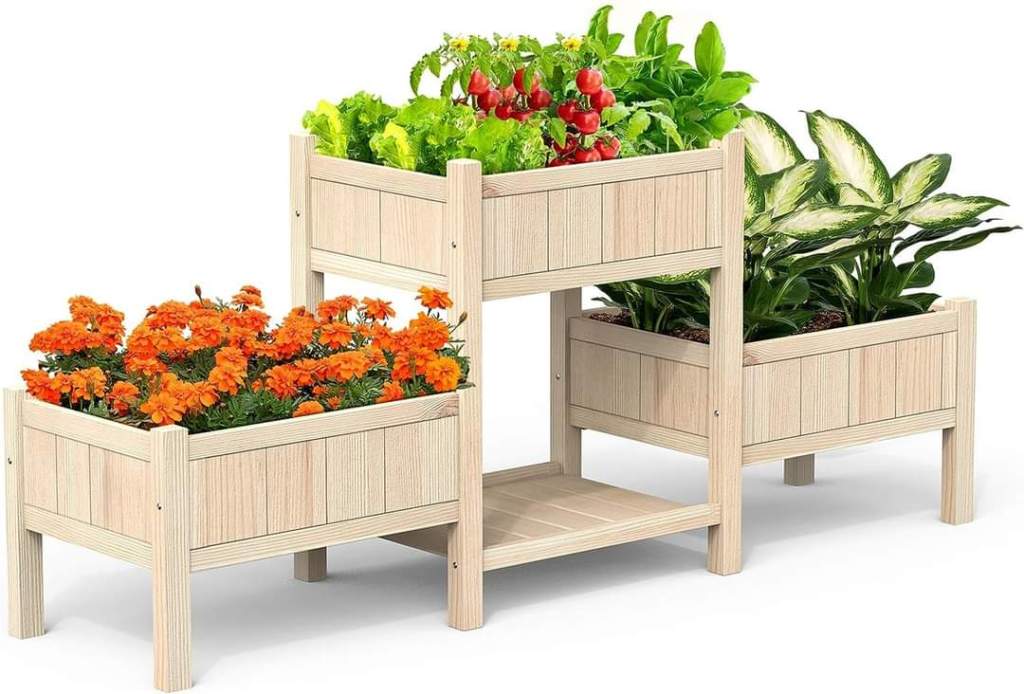 UJUJIA Wooden Garden Bed, Raised Bed with Legs, 3 Tier Elevated Wood Planter Box Outdoor for Vegetables Flowers Fruits Herb Garden Box for Backyard/Patio/Gardener