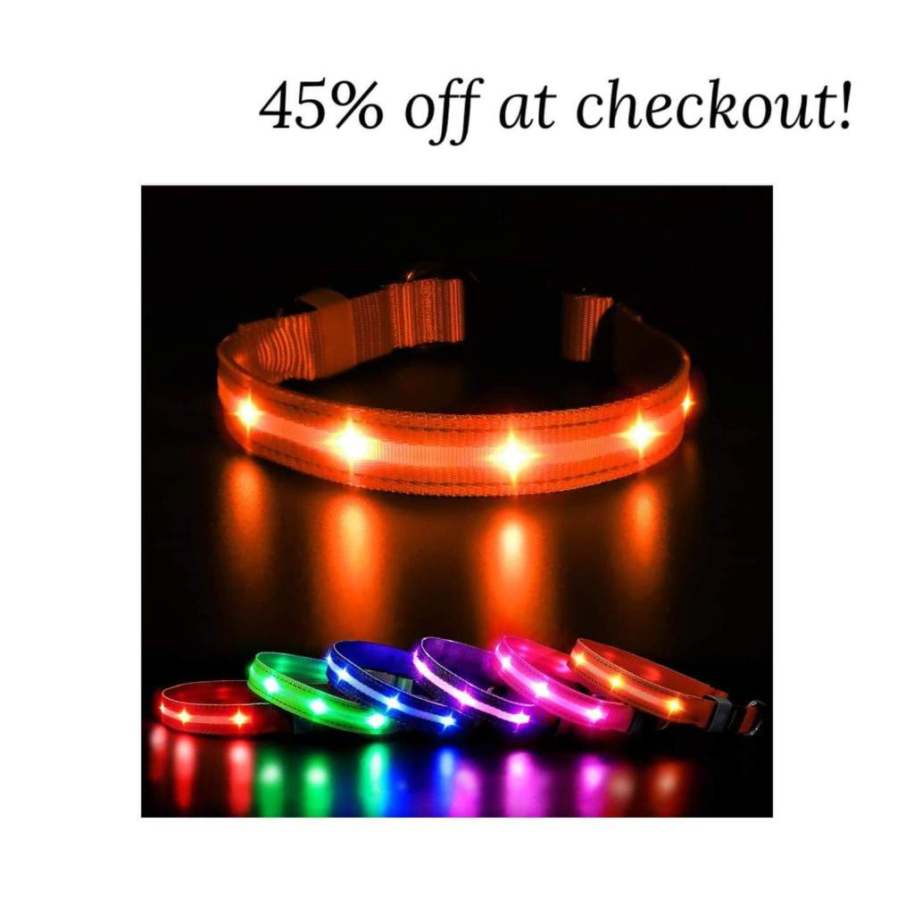 45% off! Highly rated light up LED dog collars are 45% off at checkout! Just grabbed one for Remi, perfect for late night or early morning walks.