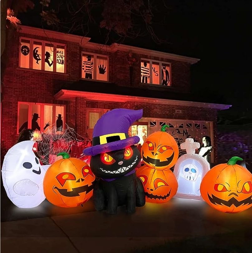 DEAL!! MICOCAH 8 FT Long Halloween Inflatables Outdoor Decorations – Blow Up Cat & Pumpkin Lanterns with Tombstone Ghost clip qpōn at checkout Let me know if you grab #ad