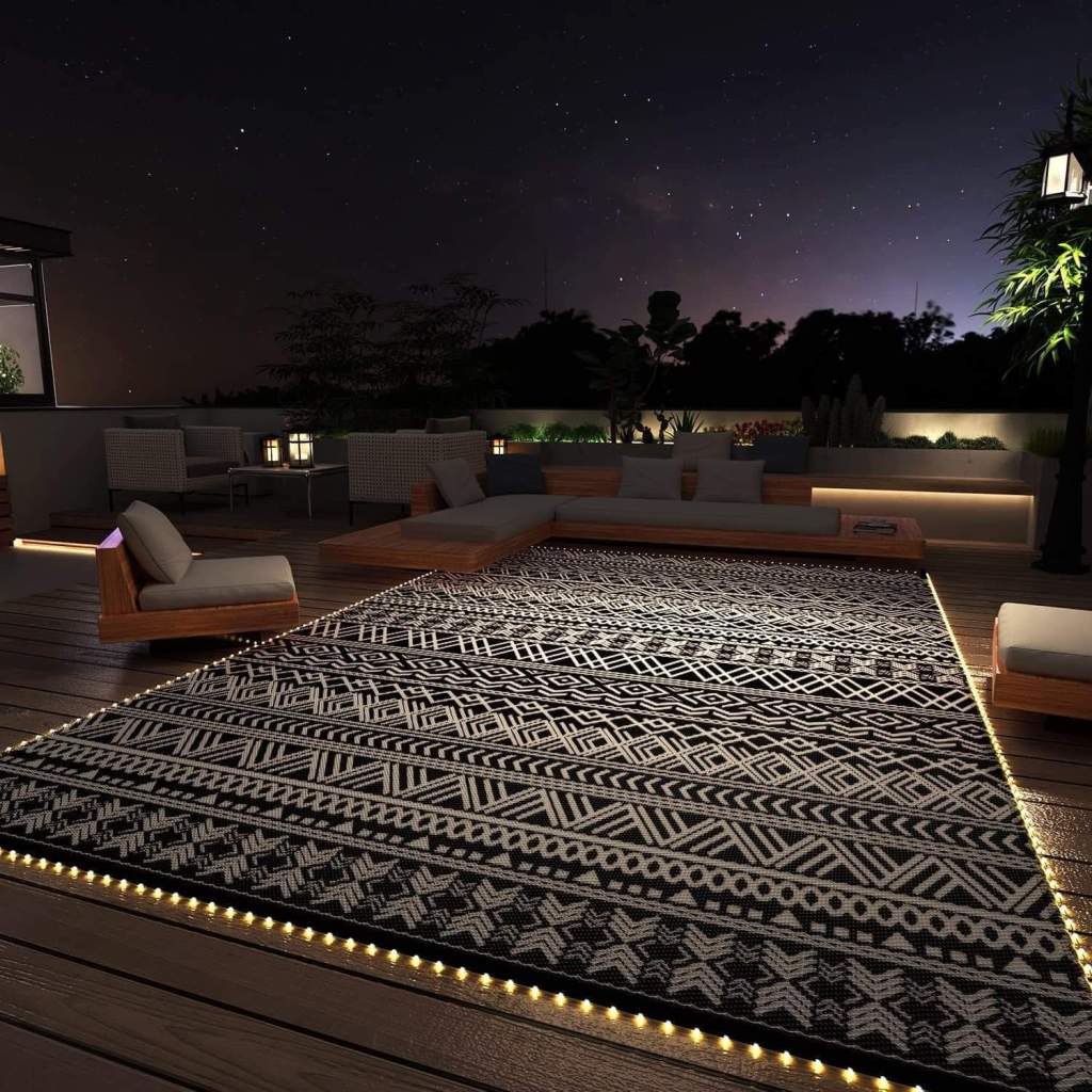 OKKKK how cool?!? Save and Share Deals found this awesome outdoor waterproof rug WITH LED lights! 40% off applies at checkout and other outdoor rugs available too!