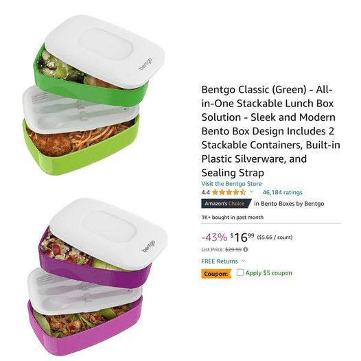 Highly rated bentgo stackable lunch boxes are on major sale + showing $5 coupon in these colors! Let me know if you grab #ad