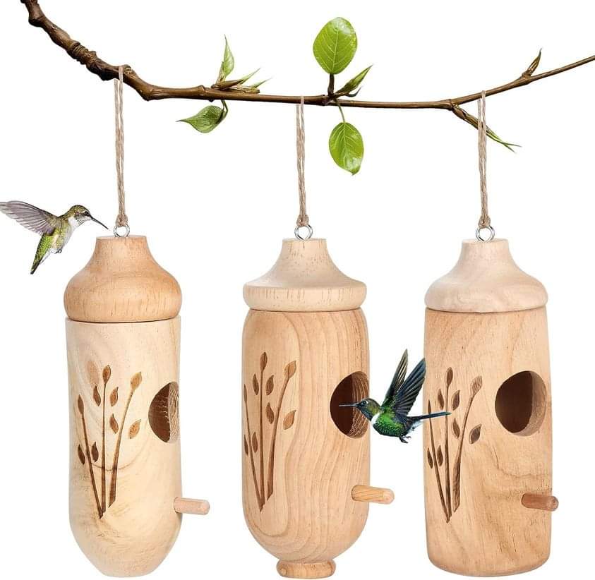 Hummingbird House Wooden Hummingbird Houses for Outside Hanging for Nesting, Hummingbird Swinging Nest Bird Houses for Garden Window Outdoor Home 3 Pcs
