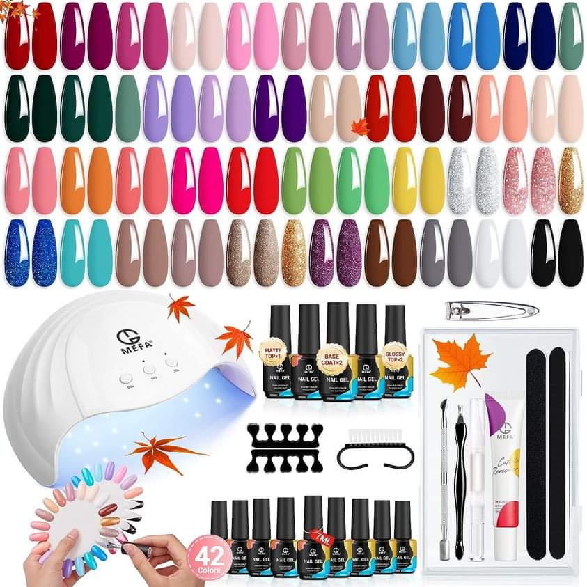 MEFA 60 Pcs Gel Nail Polish Kit with U V Light – 42 Colors All Seasons Gel Nail Polish Set with Matte/Glossy Top Base Coat,