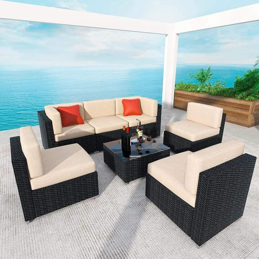 yoyomax Patio Furniture Set-7PCS Modular Outdoor Sectional Wicker Conversation Sofa w/ 6 Chairs, clip qpōn at checkout Let me know if you grab #ad