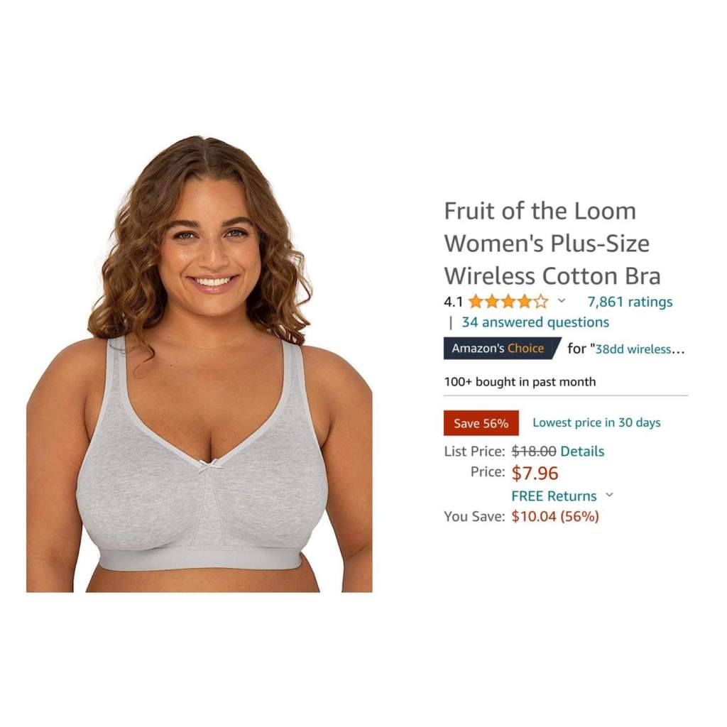 56% off! Fruit of the Loom Women’s Plus-Size Wireless Cotton Bra is under $8!