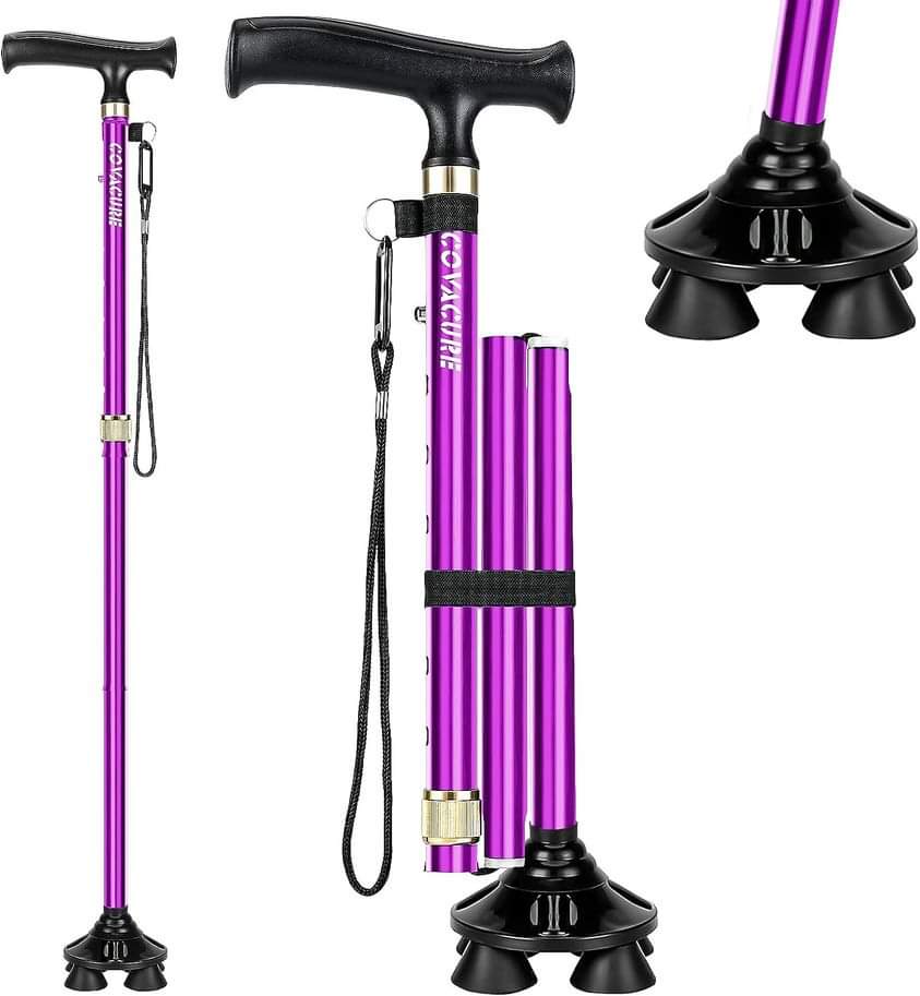 COVACURE Walking Cane for Women Men – Folding Cane with Pivot Large Base Design,