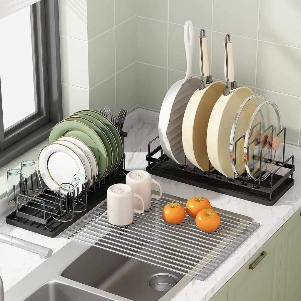 π π π This 3-piece set is a lifesaver for small spaces! You get TWO compact dish drying racks, plus a roll-up over-sink rack! So handy and versatile. Great for RVβs, apartments, and tiny kitchens like mine!