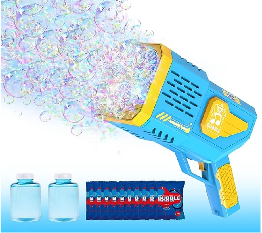 HeyMate Bubble Machine Gun, Blue Bubble Maker with Cool Lights/12 Bubbles Solution, No-dip Automatic Bubbles Machine is on 50% 0ff!! With qōde EGKDB5SV at checkout #ad