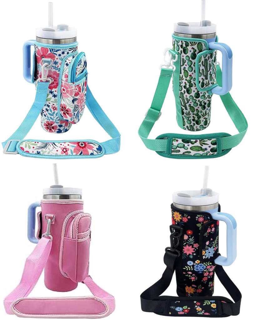 Omg, how neat! These carrier bags hold a 40 oz. tumbler and have a pocket for your phone. Genius and they’re dropping 50% off at checkout!