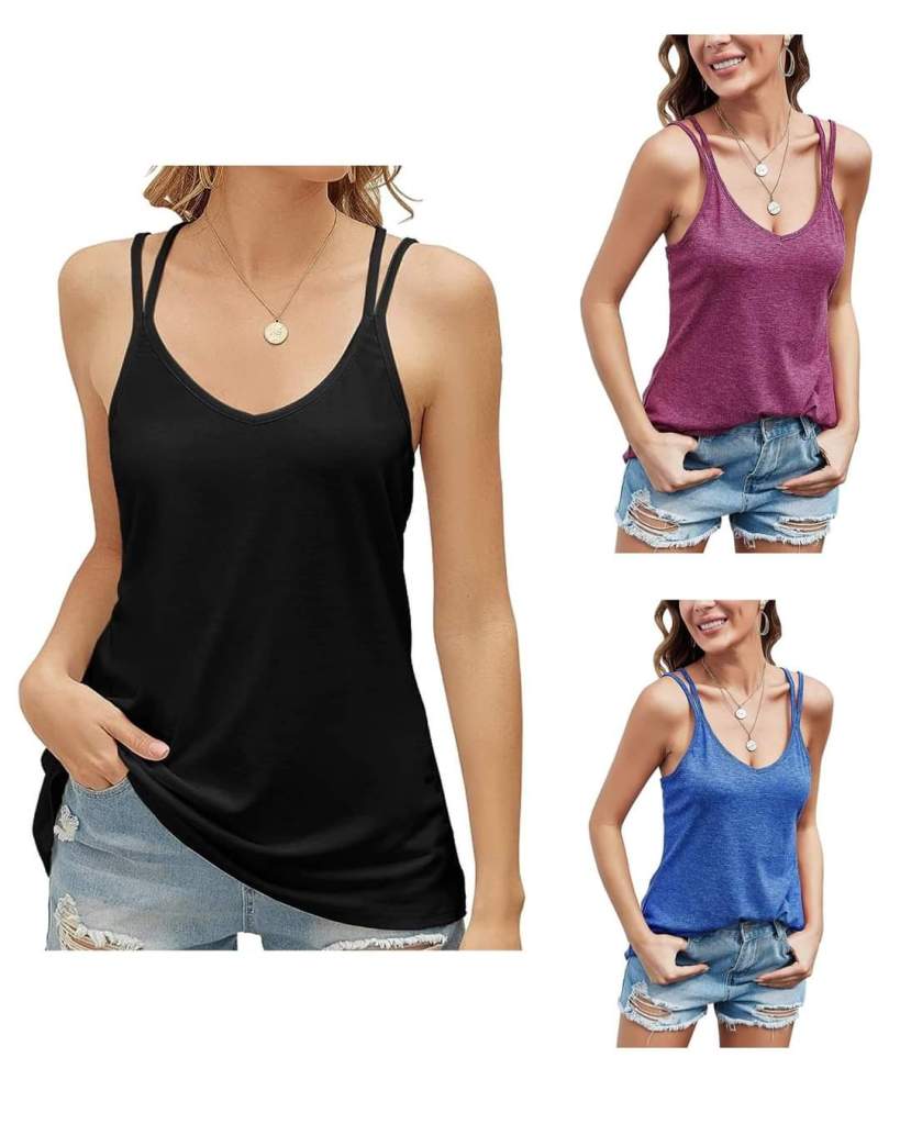 LOMON Women’s Casual Floral Print Double Spaghetti Strap Tunic Tops Summer V Neck Paisley Sleeveless Tank Shirts are 75% 0ff at checkout #ad