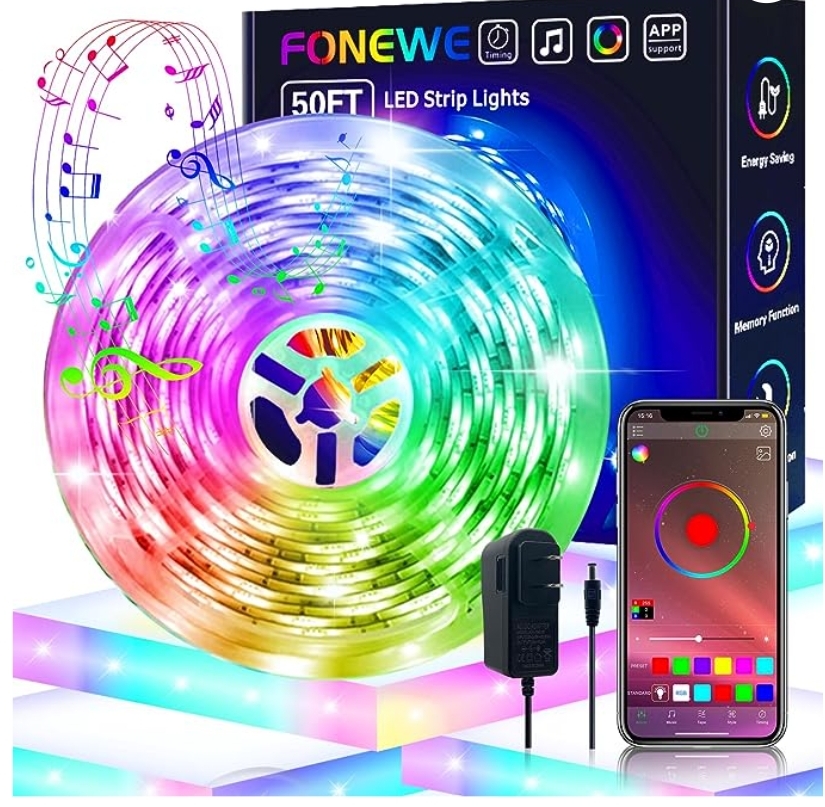 FONEWE LED Lights for Bedroom 50FT Music Sync LED Light Strips Color Changing LED Strip Lights clip qpōn at checkout #ad