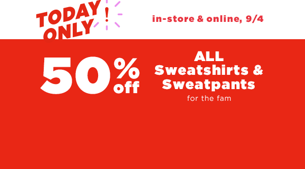 Sweatshirts and sweatpants are 50% off at Old Navy today!