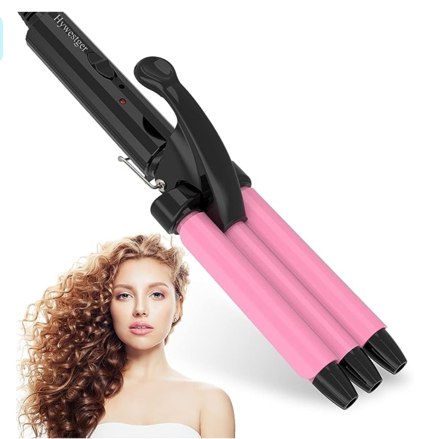 Hywestger Mini 3 Barrel Curling Iron, 1/2 Inch Small Beach Waves Curling Iron for Travel Dual Voltage Curling Wand, clip qpōn at checkout #ad