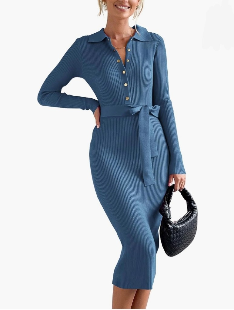 BTFBM 2023 Women V Neck Long Sleeve Bodycon Sweater Dress Button Up Tie Waist Ribbed Knit Midi Pencil Dresses is 30% 0ff at checkout #ad