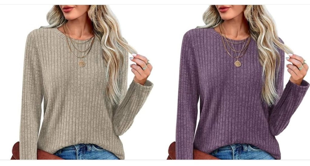 XIEERDUO Long Sleeve Shirts for Women Crew Neck Lightweight Casual Tunic Tops Winter Fall Fashion clip qpōn at checkout #ad