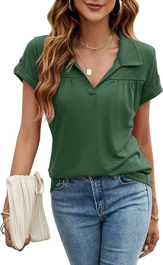70% 0ff!! Micoson Womens Polo Shirts V Neck Short Sleeve Collared Tops Pleated T Shirts Casual Tunic Blouse at checkout #ad