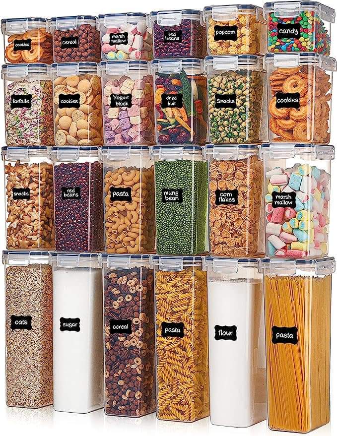 Vtopmart Airtight Food Storage Containers with Lids, 24 pcs Plastic Kitchen and Pantry Organization Canisters for Cereal, Dry Food, is on drōp+ clip qpōn at checkout #ad