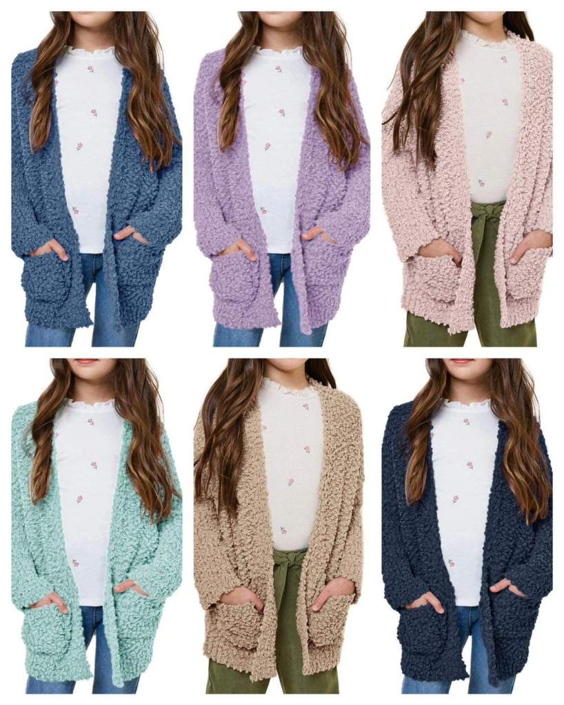 Finally, the girls popcorn cardigan sweaters we love are back and 40% off at checkout (not the cart)!! These are fantastic and my girl wore hers so much since I ordered last time, grabbing another! ***Limit one per account***. Fits TTS.