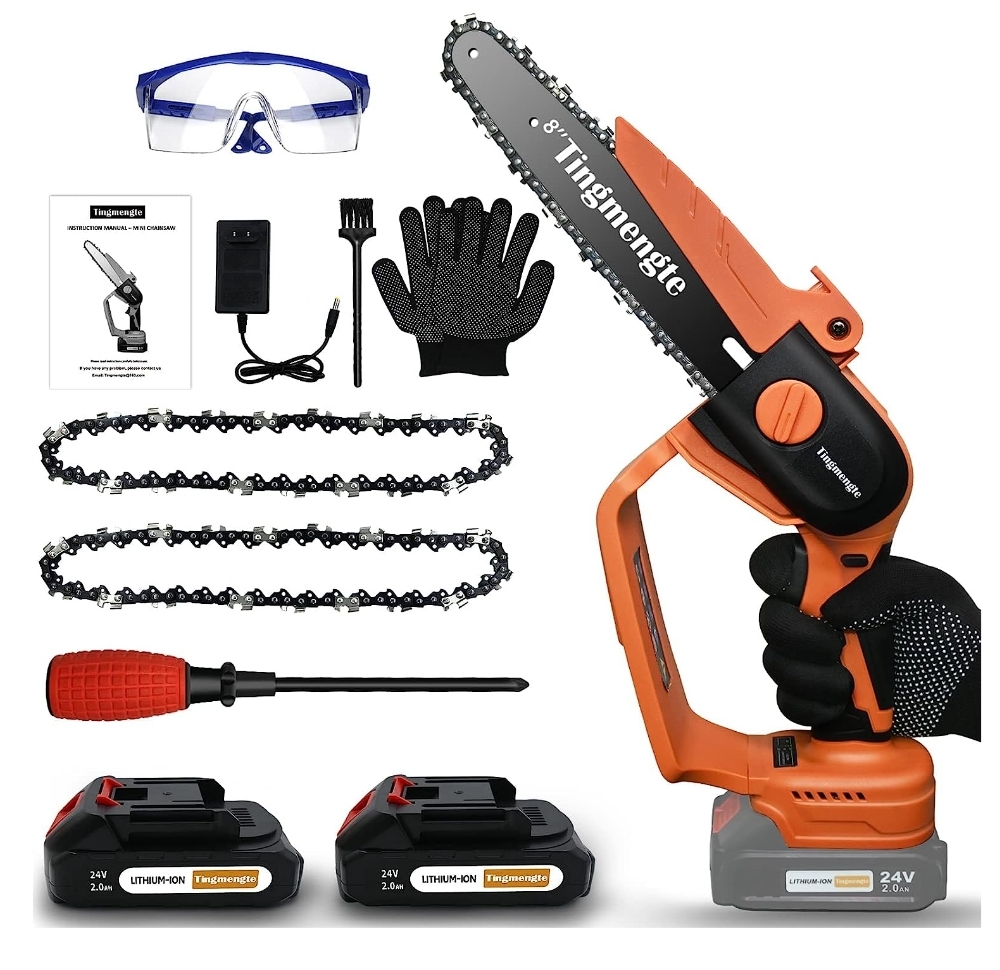 Mini Chainsaw 8 Inch, Cordless Mini Chainsaw Battery Powered with 24V 10000mAh Rechargeable Battery, 3.4Lb One-Hand Use Electric clip qpōn at checkout #ad