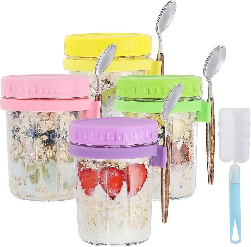 DANALLAN Overnight Oats Containers with Lids and Spoons, 4Pcs Overnight Oats Jars 10 oz Large Capacity Airtight is on 50% pr!ce drōp at checkout #ad