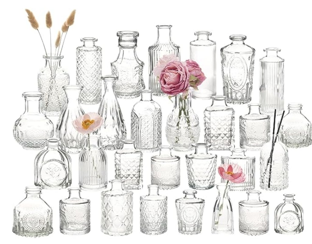 Bud Vases Set of 30 Pcs, Small Glass Flower Vases for Centerpieces, Cute Clear Crystal Bud Vases in Bulk, Mini Vintage Vase for Rustic Wedding Decorations is on 50% pr!ce drōp at checkout #ad