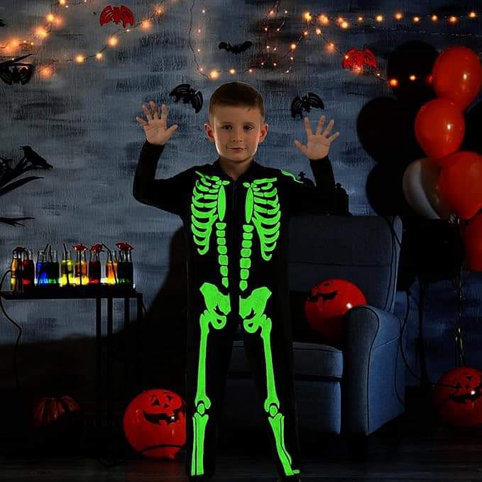 ā ļøšā ļø Super Limited Group Exclusive! Run for this fun and easy Halloween costume for kids! An easy zip-up jumpsuit with glow-in-the-dark skeleton design. Fun for trick-or-treat, or just for dress-up at home!