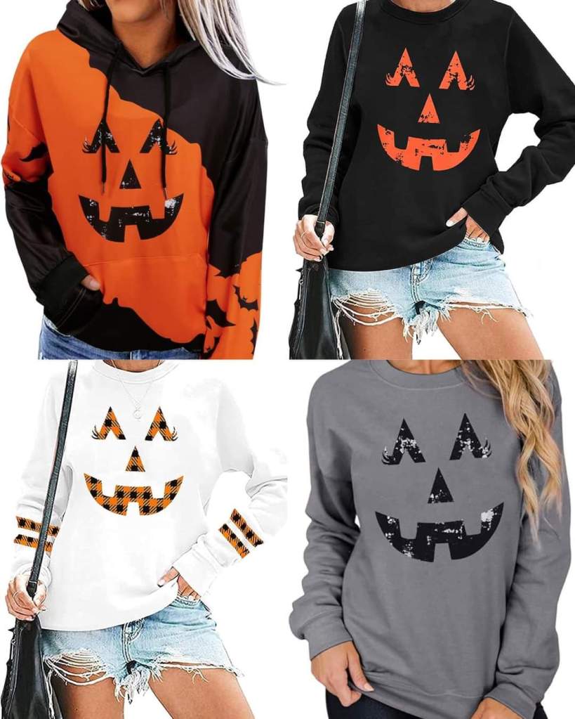 Halloween Pumpkin Face Sweatshirts Women Fall Pumpkin Long Sleeve Shirts Blouse Pumpkin drōps 40% with NM3KIKBL at checkout #ad