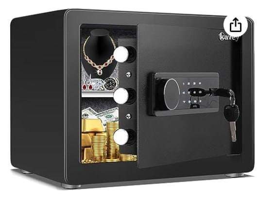 Kavey 0.8 Cub Safe Box, Home Safe with Backlit Touch Screen Keypad and Dual Alarm System, Money Safe With Mute Function and LED Light, is on pr!ce drōp at checkout #ad