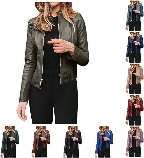 Firzero Women Leather Bomber Jackets 2023 Fashion Fall Trendy Jacket Zipper Half Neck Long drōps 50% use TBXVH2GL at checkout #ad