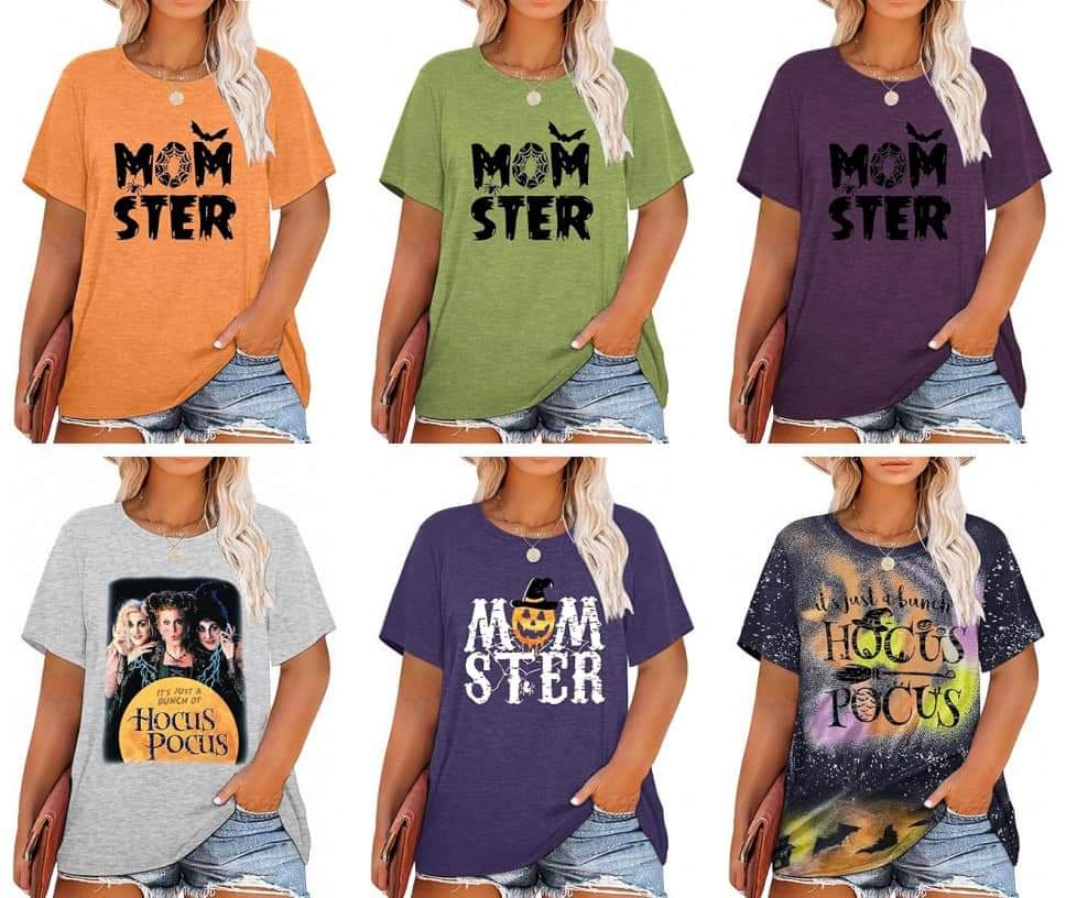 Plus size Halloween shirts are 45% off with code VO9SCY6F at checkout!