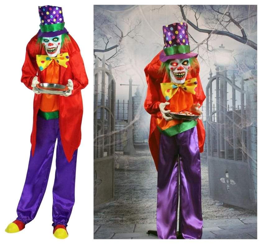 Haunted Hill Farm Life-Size Animatronic Scary Clown Holding Tray with Touch Activated Lights and Sounds is on pr!ce drōp + clip qpōn at checkout #ad