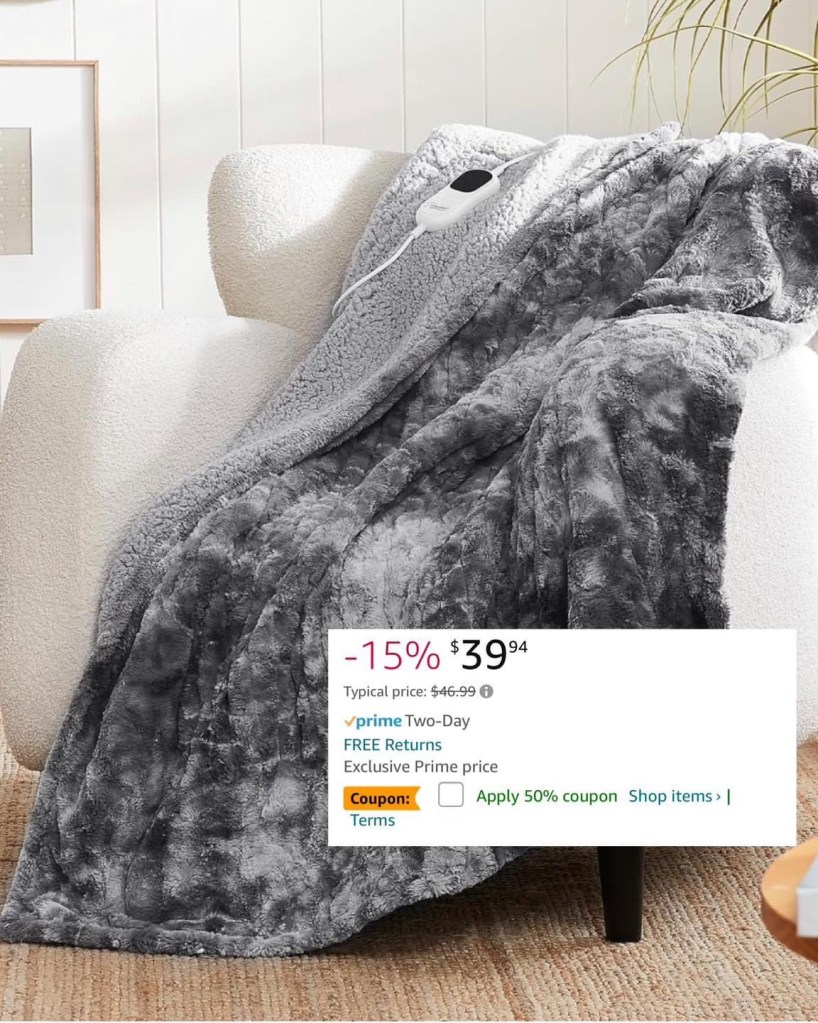 Heated Blanket stutidavewpSeptember 17, 2023Amazon, Deals Post navigation PreviousNext No idea how long this will last but great price on this heated blanket on a major drop!! #ad SHOP DEAL Share this: Share on X (Opens in new window) X Share on Facebook (Opens in new window) Facebook Like Loading...