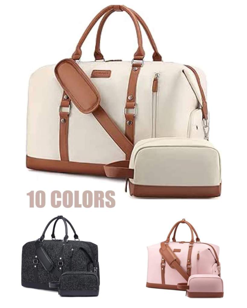 Realer Canvas Weekender Bag, Womens Overnight Bag Carryon Weekend Travel Duffel Tote with Shoe Compartment is on 50% 0ff!! With qode S39PCVXS At checkout