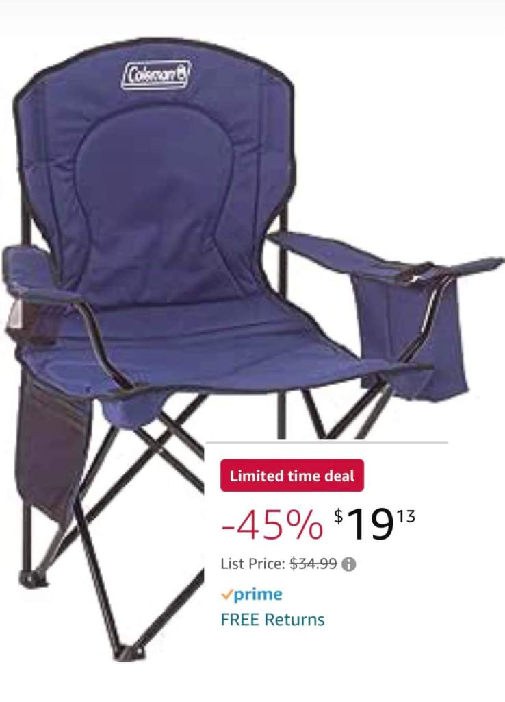 Oh wow!!! Fantastic score on the Coleman portable camping chair! This has a 4 can cooler too! Great for tailgates, the ball field, camping, etc! Iimit 4 per person. Please say if you snag one (or 4)!
