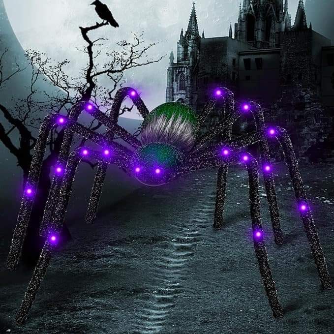 Light Up Giant Halloween Spider Decorations with Back Gradient Light.