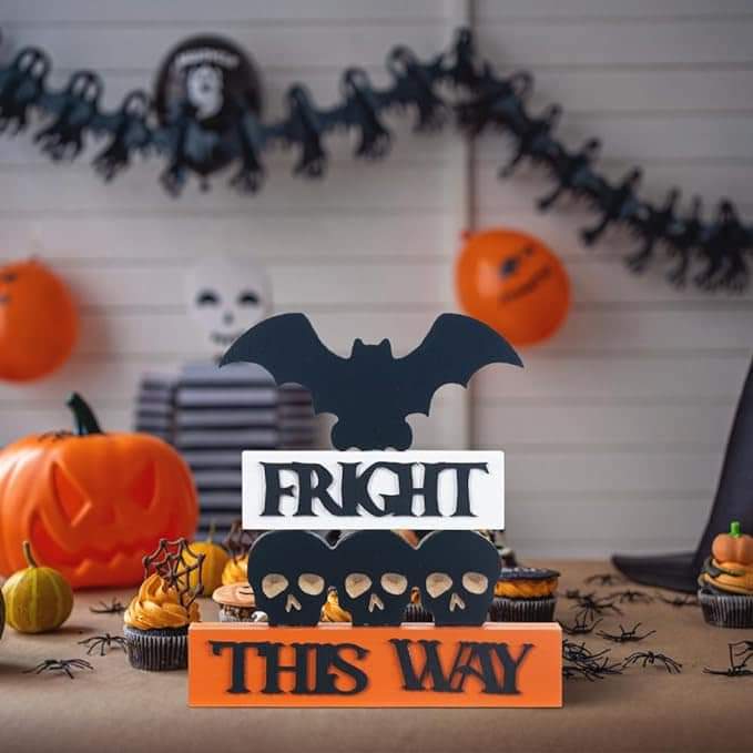 Halloween Decorations Indoor, DECSPAS 4-Layered Bat Skull Block Halloween Decor, Raised Black FRIGHT THIS WAY Sign Hocus Pocus Decorations for Home is on pr!ce drōp at checkout #ad