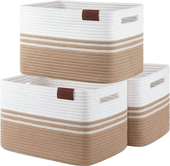 SIXDOVE 3 Pack Shelf Baskets, Woven Cotton Rope Storage Bin, Soft Rectangular Closet Basket Set, Long-Lasting & Stylish, Is on pr!ce drōp + clip qpon at checkout