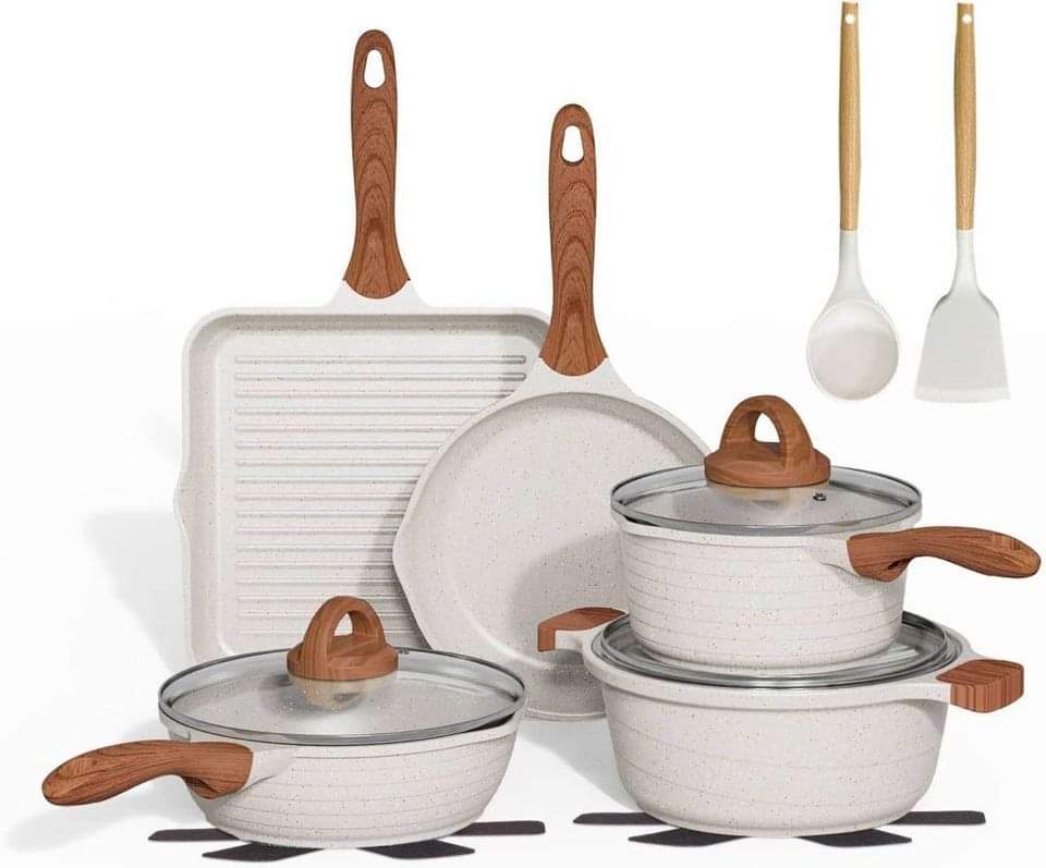 JEETEE Pots Nonstick, 1.5 Quart & 2.5 Quart Induction Granite Coating Saucepan Sets with Glass Lid & Pour Spout, PFOA Free (Grey, 4pcs Pots Set) is on pr!ce drōp at checkout #ad