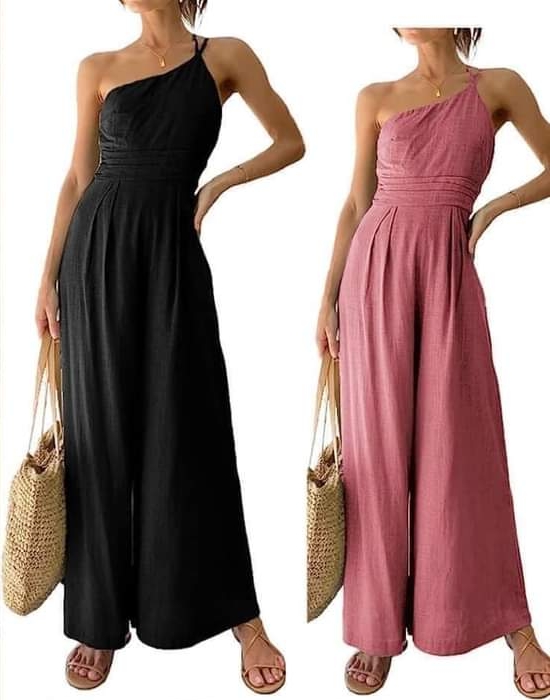 Caracilia Women’s Summer Wide Leg Dressy One Shoulder Straps Pleated High Waist Jumpsuit is on 70% 0ff!! At checkout #ad